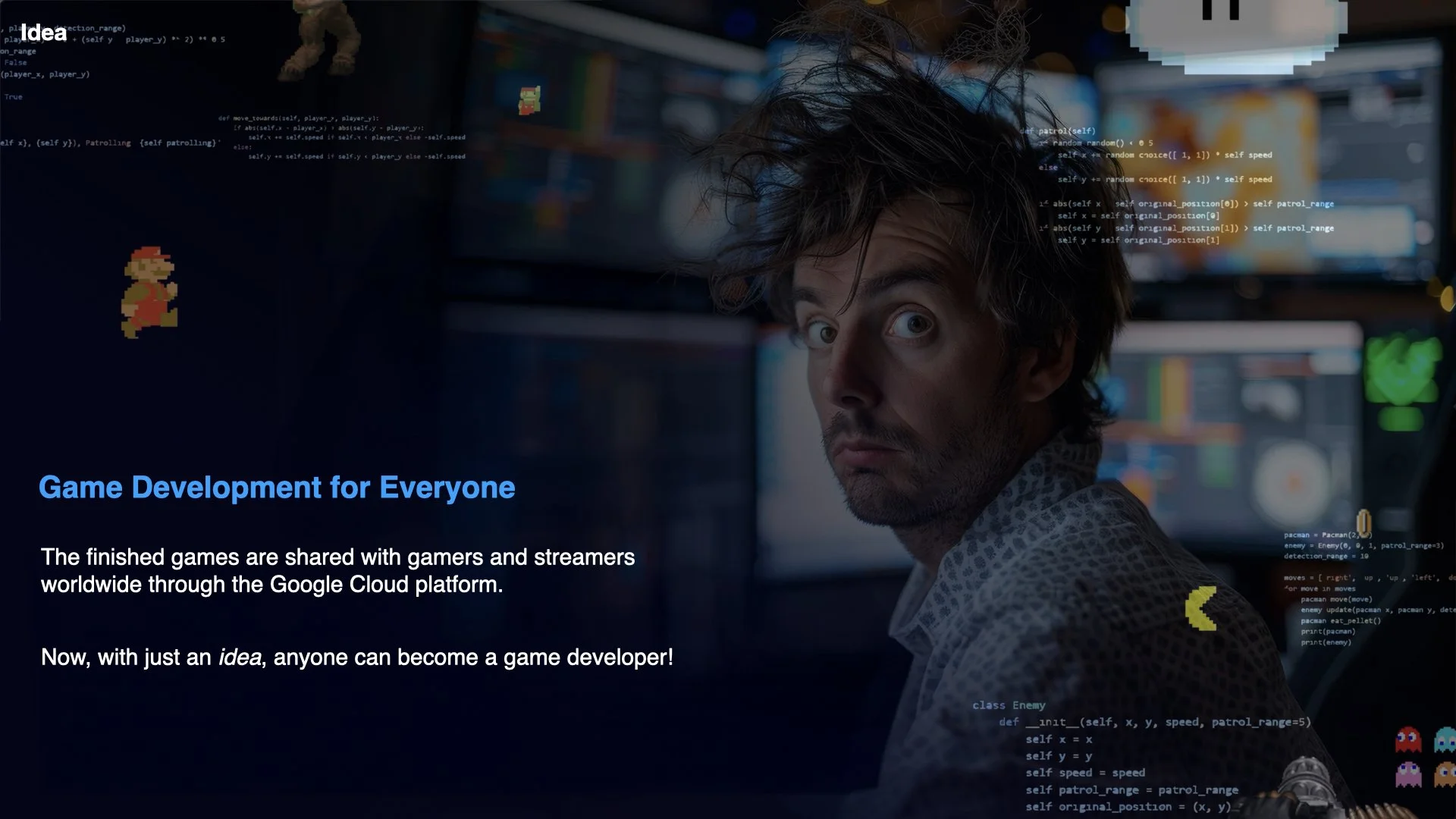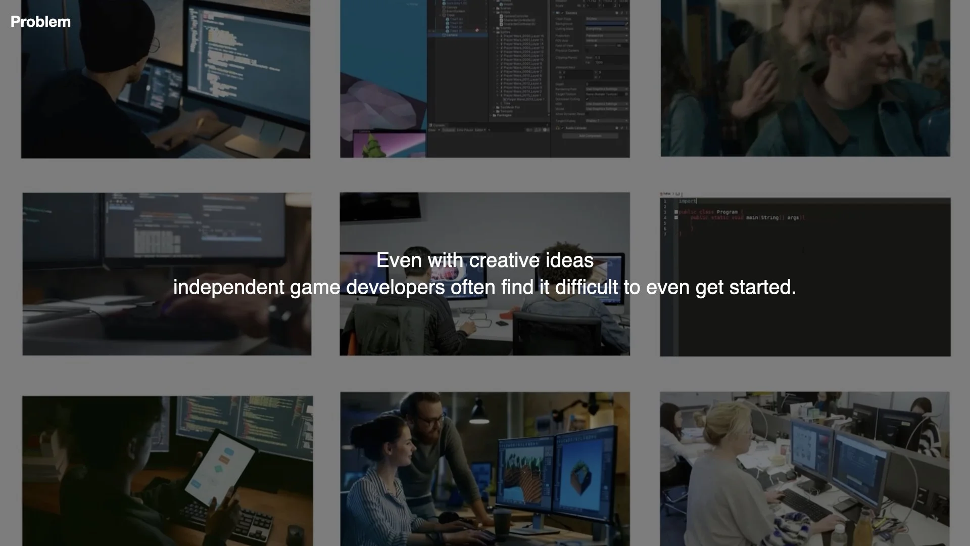 Even with creative ideas, independent game developers often find it difficult to even get started. Because it typically requires 3–4 years of a university major along with additional specialized training in game engines—plus countless other tasks beyond artwork, animation, and game promotion.